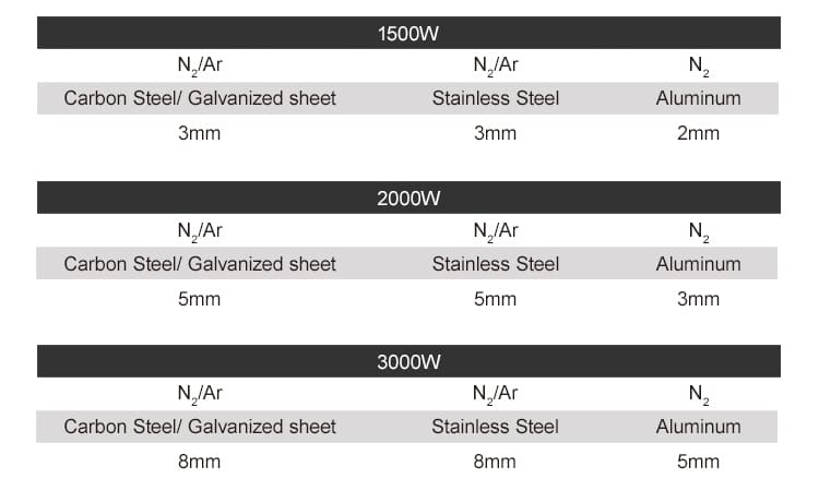 1) Materiały i grubość spoiny: Aby dopasować odpowiednią moc generatora laserowego.