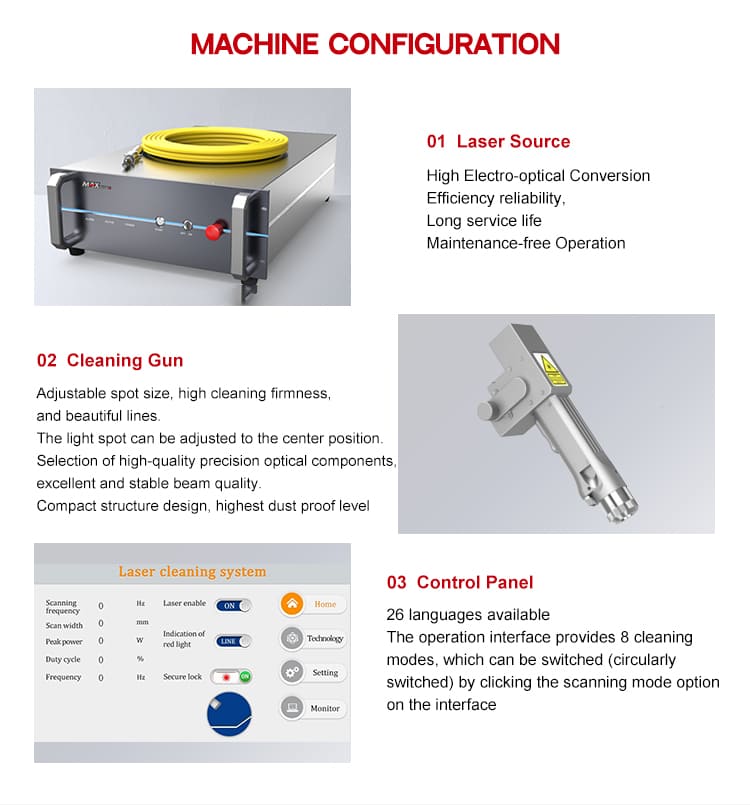 Jako bezdotykowa laserowa maszyna czyszcząca nie uszkadza podłoża części, nie oszczędza materiałów eksploatacyjnych, oszczędza energię i chroni środowisko, a także może skutecznie usuwać żywicę, olej, plamy, brud/rdzę, powłoki, okładziny i farbę z powierzchni przedmiotu obrabianego, aby spełnić wymagania dotyczące czyszczenia w zakresie złożonego modelowania i dokładnego pozycjonowania w obszarze przetwarzania przemysłowego, osiągnąć wyższy stopień czystości efektu czyszczenia oraz korzyści produkcyjne przy niższych kompleksowych kosztach.