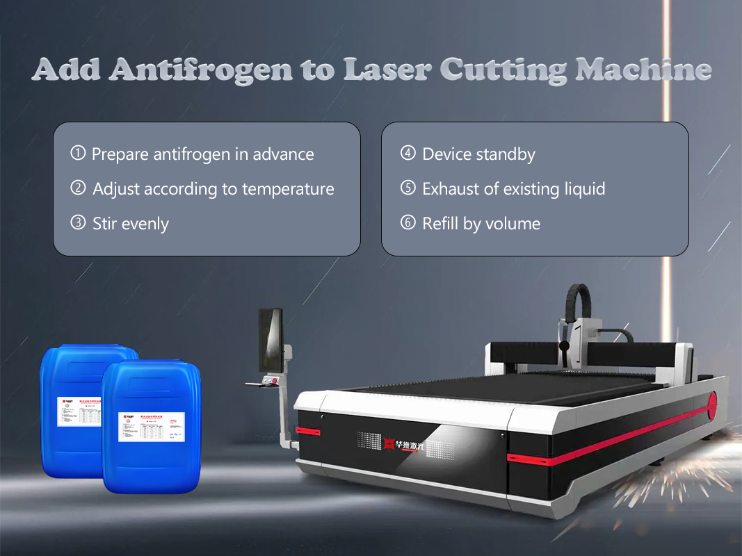 First, prepare the antifrogen in advance, mix it according to the temperature and stir it evenly. Then drain the old coolant and clean the cooling pipes to ensure that no impurities remain; then slowly add industrial-grade antifrogen suitable for the temperature to the level mark through a funnel; start the cooling system for a short cycle to remove air, and check again whether the level is normal; finally confirm that there is no leakage in the pipes, and properly dispose of the old coolant to avoid polluting the environment. This operation can effectively protect the equipment from low temperature damage.