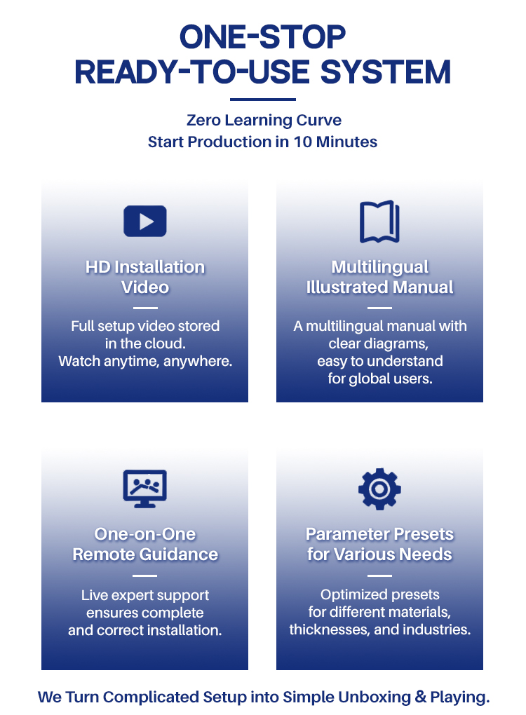 Odp.: Nasz technik zainstalował maszynę przed wysyłką. W przypadku niektórych instalacji małych części wyślemy szczegółowy film szkoleniowy, instrukcję obsługi wraz z maszyną. 95% klientów może uczyć się samodzielnie.